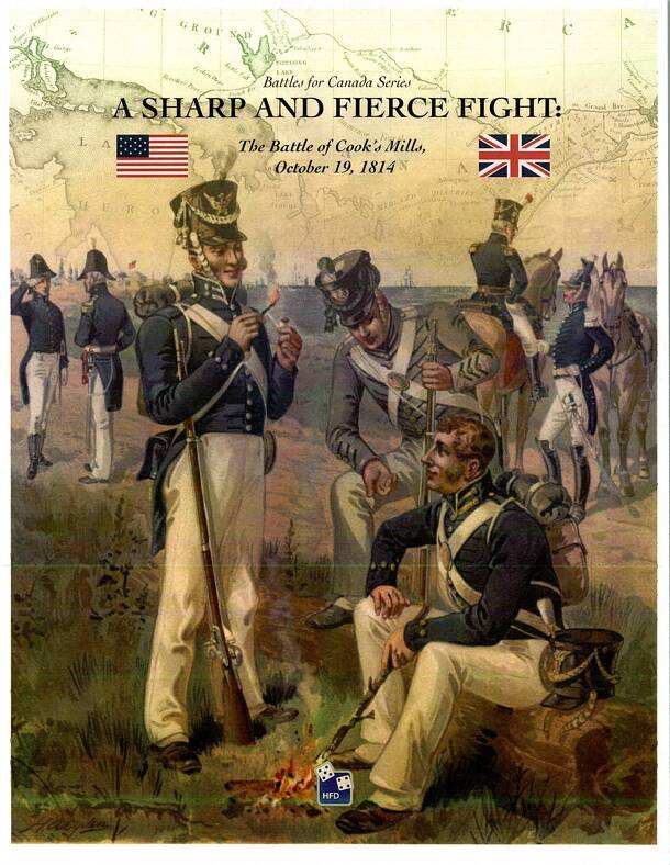 A Sharp and Fierce Fight is an introductory level wargame on the battle of Cook's Mills. It is part of the Battles for Canada Series that portray famous battles fought for control of Canada during the War of 1812. Each hex is approximately 50 yards across, a regular or militia infantry unit is 150-150 men, Dragoon units are 80 to 100 men, and artillery...