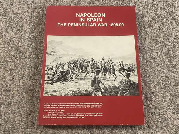A brigade-division level simulation of Napoleon's 1808-09 campaigns in Spain and Portugal featuring extensive rules covering movement, combat, supply, attrition, limited intelligence, scouting, guerrilas, and morale during the Napoleonic era. One turn = one week One hex = 16 miles One Strength point = 1000 infantry, 500 cavalry or one artillery battery...