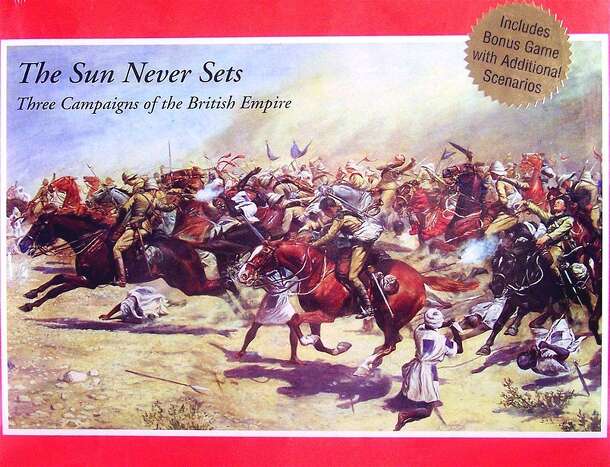 The Sun Never Sets is a mid-to-high complexity operational level game of the colonial wars fought by the British during the 19th century. It includes three separate games, namely "March to Peking", "Zulu War" and "The Sudan". The game includes a core set of rules used in all three scenarios and scenario-specific rules unique to each game. Optional rules...
