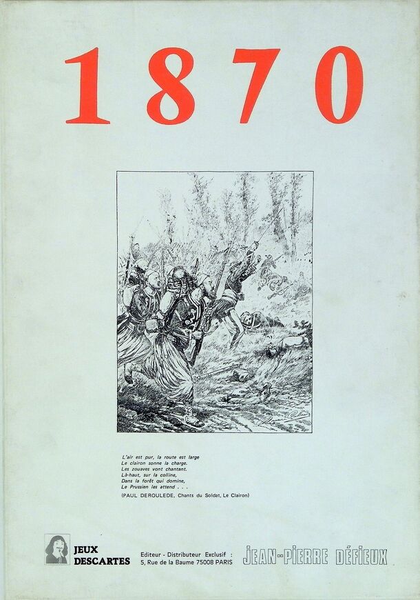 This is a historical simulation of the last fights of the Franco-Prussian war from November 1870 to February 1871. One player takes the role of the French Republican forces lead by Bourbaki trying to raise the siege of Belfort and threatening the Prussian line of supply running from Germany to Paris. The other player is in command of four strong german...