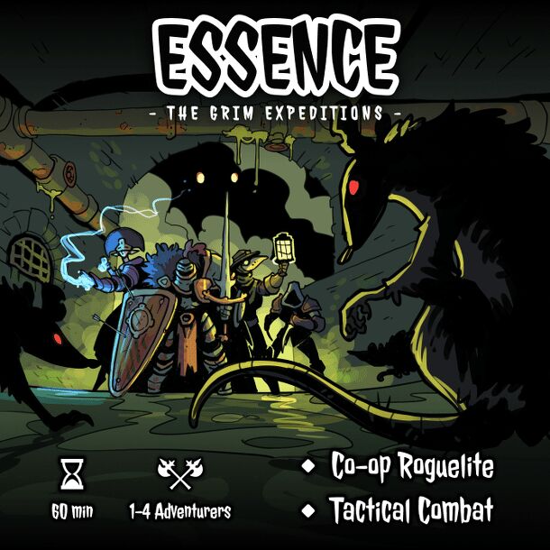 "Essence - The Grim Expeditions" is a solo or cooperative Tabletop Roguelite. What makes Essence different is that you level up your attribute bands and these are your key to transform die rolls into APs (action points). You use these to perform abilities, cast spells, or solve obstacles. This dynamic system also allows for you being attacked while still...