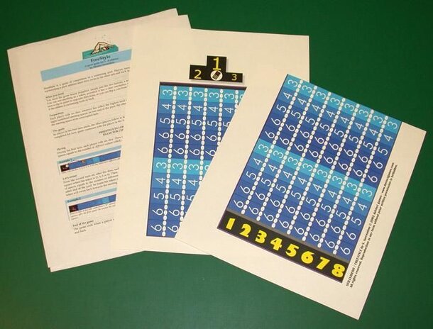 FreeStyle is a game of competition in a swimming pool. Players (from 2 to 8) move their athletes on the board representing a pool: athletes must dive, swim to the other side and back, just as in a real competition. In order to play FreeStyle, you need, beside the board supplied with the file, six dice and a token for each player. FreeStyle has some basic...