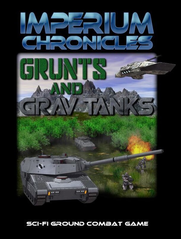Grunts and Grav Tanks (G>) is a tactical wargame focusing on ground combat in the Imperium Chronicles universe. The game represents individual units (vehicles and infantry) fighting it out between the Imperium and the Magna Supremacy. Each game can follow a pre-existing scenario or each player can use resource points to buy units. These units include...