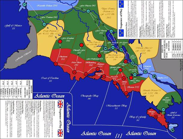 Whigs & Scalps is a two-player grand strategic conflict simulation of the French & Indian War. The map represents an area stretching from the Gulf of Mexico to Northern Québec and from the Mississippi Valley to the Atlantic. The period covered goes from 1755 to 1760, each game turn representing a full year of real time. Historically, despite some initial...