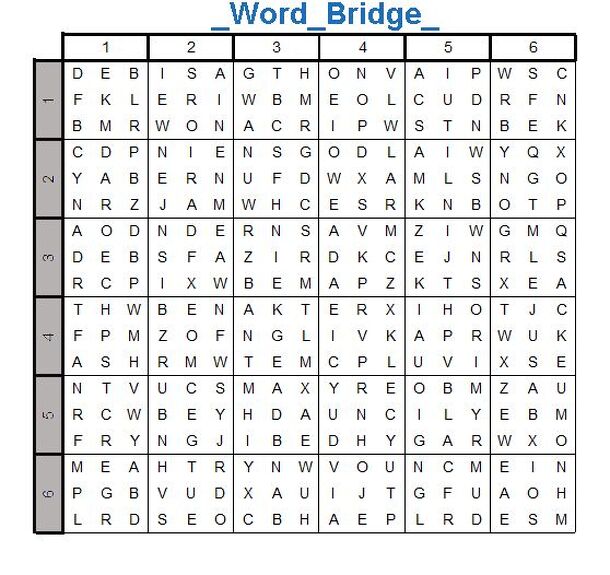 A pencil and paper game in which players use a common set of letters to generate words, crossword-style, on their individual grids. Each player starts with an empty 5x5 grid. One player begins by calling out a letter which all must use, but may place in any empty space on their own sheet. When all are ready, turn passes for the next player to call out....