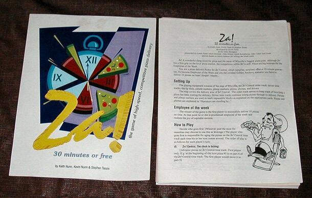 You are a pizza delivery flunky for Za! Central, which (surprise, surprise) offers a 30 minute guarantee. To become Employee of the Week and win the coveted Golden Anchovy statuette you have to deliver 10 pizzas on time. Simple? Maybe... This is a desktop-published game with cards and counters you need to cut out, and a large paper game map. Each turn you...