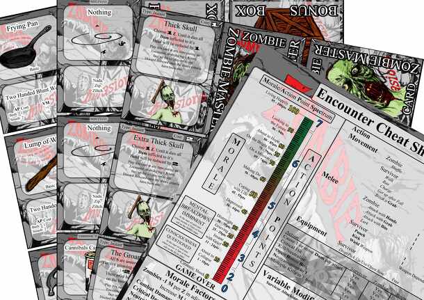 Zombie Invasions is a Zombie Apocalypse Survival Horror Combat System developed by Frugal Rock Games. This board game allows for 2 - 5 players to take on the role of either Survivors or the Zombie Master in a strategic turn based fight for survival. Survivors must employ their wits and a selection of weapons in order to defeat wave after wave of shambling...