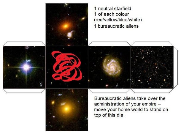 A print-and play game for the BGG "Make a Dice Game!" competition. The playing area starts as an empty star field made up of 25 dice, each representing a solar system. Each player chooses a corner, and turns the die in that corner so their face is uppermost. Each turn, a player first explores (by picking up any die and placing it back in the same...