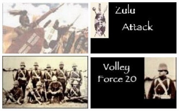 "Card game. Simulates a battle between Zulu & British Troops." One player represents the Zulu forces and the other player is the British. Each side has its own custom deck of 52 cards. Through card play the British may build fortifications, Zulu snipers can attack, and British sharpshooters can fire back. The Zulu player also gets to decide whether or not...