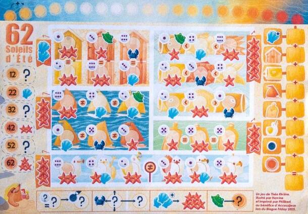 62 Soleils d'été ("62 Summer Suns") is a roll & write game designed and sold in aid of Accessijeux, a French non-profit organization dedicated to making board games accessible to visually impaired players. Only 1000 copies of the games has been made available, sold online only on 28/11/2025. The goal of the game is to earn the most starfish. Each turn, the...