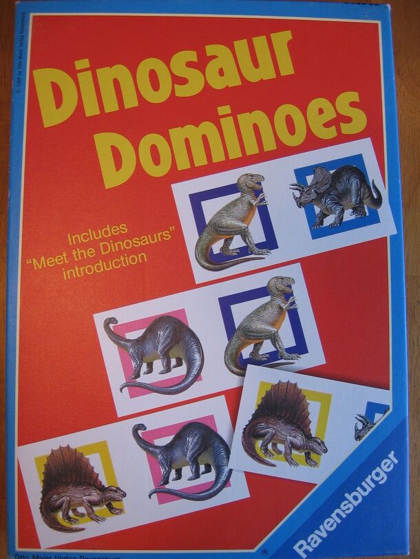 From the back of the box: "Features three exciting games with colorful and detailed dinosaur cards. Younger players will enjoy Go Dino!, based on the traditional game "Go Fish". Use your memory and observation skills to play Dino Search. And real dinosaur fans will want to play Dino Challenge, a game that pits dinosaur against dinosaur. 53 fact-filled...