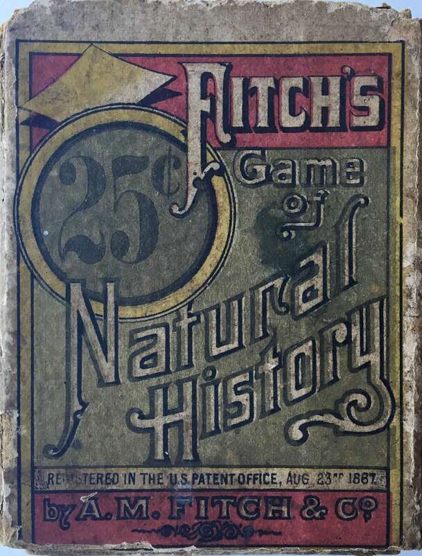 This 1887 card game was designed to teach children the names and images of animals. The deck has 40 cards, each with the name and large ink drawing of an animal on top, and four small drawings and animal names underneath, forming sets of five cards to be collected. Each card also bears a number from 1 to 8 to identify the set. This is intended to allow...