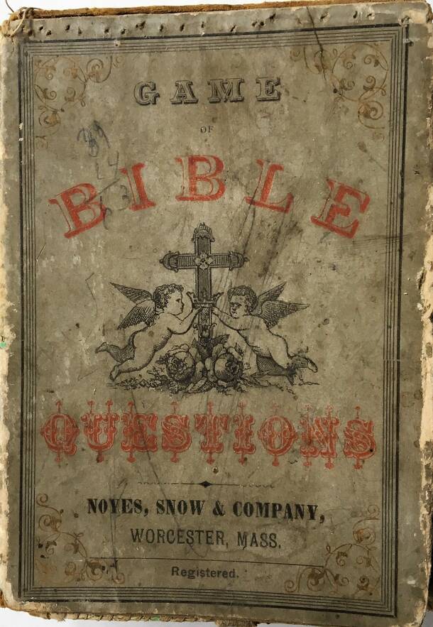 This 36-card deck is organized like a Happy Families deck into nine "books" of four cards each. But its play is based on answering questions about the bible, not on simply asking for cards. Each card indicates which "book" to which it belongs, a topic word (such as Matthew or Calvary), two questions with Bible chapter and verse references, and one answer...