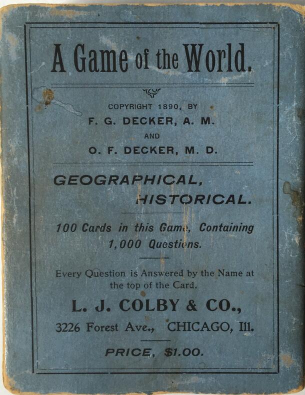 This game is comprised of a deck of 100 cards, each of which bears the name of a country, colony, region or body of water along with 10 questions about its subject. Each player is dealt a hand of three cards. The first player asks the player to his left one of the questions on one of his cards. If the second player answers the question correctly, he takes...