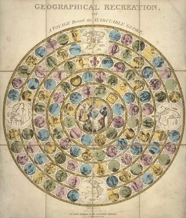 Individually or in teams, players draw a card that represents either a country or a U.S. State and answer standard questions in order to move. Each country is assigned a number, and the answering player/team gets to look at one of several maps for aid in answering the 5 questions. The marker moves forward 3 points for the first 2 questions answered...