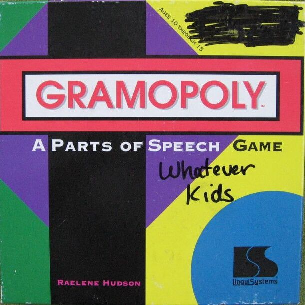 60 grammar terms and their descriptions are the basis of this Bingo-type 'educational' game. Each player gets one of 40 'GRAMO' cards, a 5 by 5 grid where each square has a grammar term number and it's description. The caller randomly pulls from the stock of 60 tokens, and reads aloud the column letter (G, R, A, M, or O), a grammar term, and optionally...