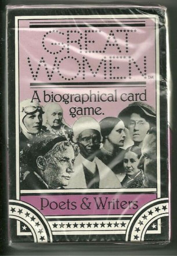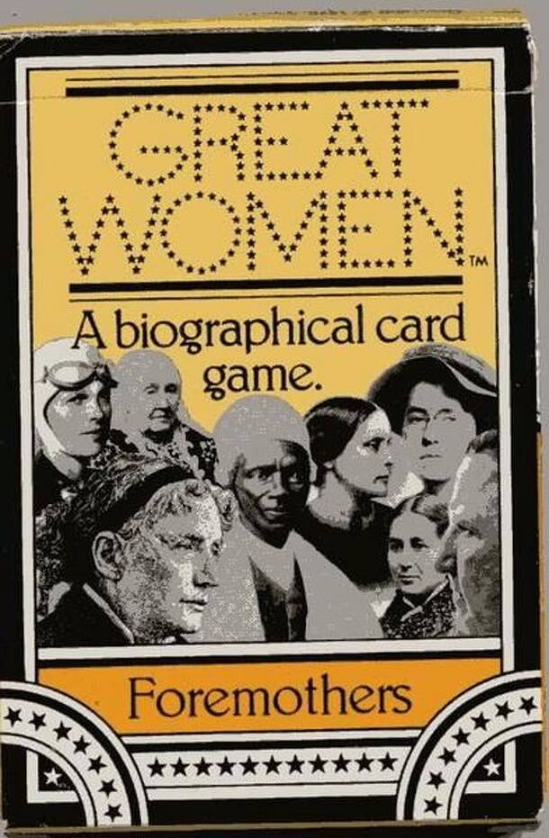 Game number three in the Great Women card game series. From the back of the box: "FOR CHILDREN & ADULTS Discover America's heritage with a game that takes you into the lives of outstanding American women. This box contains one deck of 52 cards and instructions for play. The cards contain photos and facts about 10 GREAT WOMEN -- women who led the...