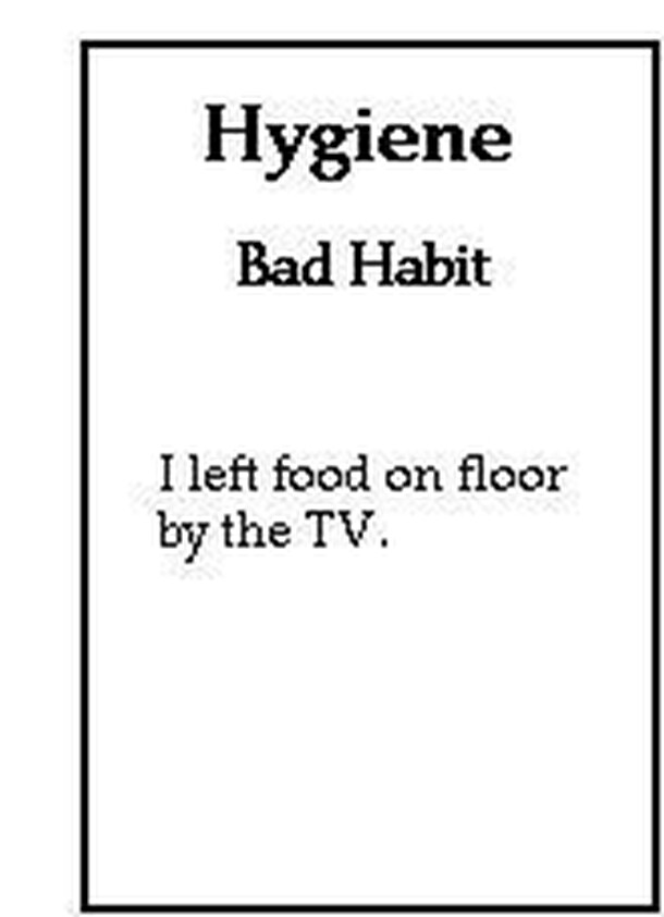 The players shall be able to become more aware of what constitutes both good and bad habits. Players must try to get as many Good Habit cards as possible and discard all Bad Hait cards. The game ends when one player acquires four Good Habit cards in one category and three in the other, with no Bad Habit cards. The winning player then announces, "Good...
