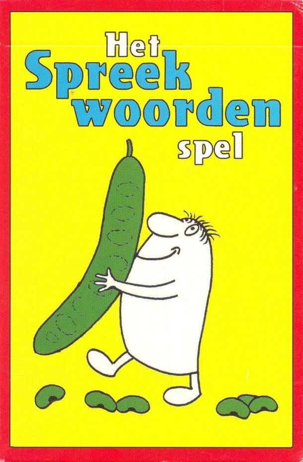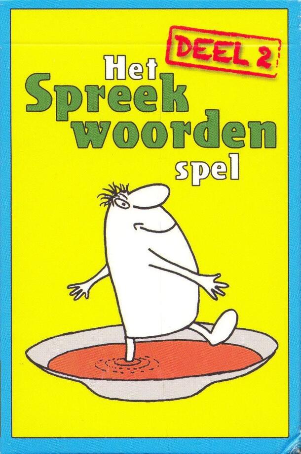 This is a cardgame where the cards have a drawing on one side, that depicts a Dutch proverb. On the other side the proverb is listed, along with an explanation, example phrases, and a point value. Each turn a player takes one card (with picture visible) and tries to guess the proverb. If possible the explanation can be given. If a player is right, they get...
