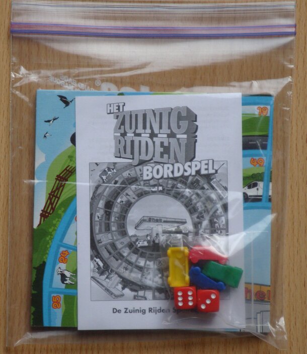Het Zuinig Rijden Bordspel - freely translated to "The Economical Driving Boardgame" - is made by Shell as a promotional game for "De Zuinig Rijden Beweging" ("The Economical Driving Movement"). This movement wishes to help drivers save 10 percent fuel by giving and sharing driving tips. The game components: - gameboard - 4 cars (pawns) - 2 dice -...
