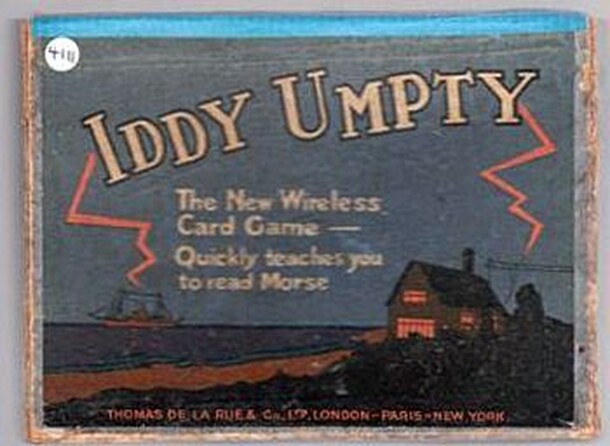 The New Wireless Card Game - Quickly teaches you to read Morse. This is an older person's Snap variant. During the game you need to alike images and you need to know the Morse Code name for the letter (if that letter has a name identity). I think it probably dates from the 20's. The winner is the one who ends up with all the cards. The name was not made up...