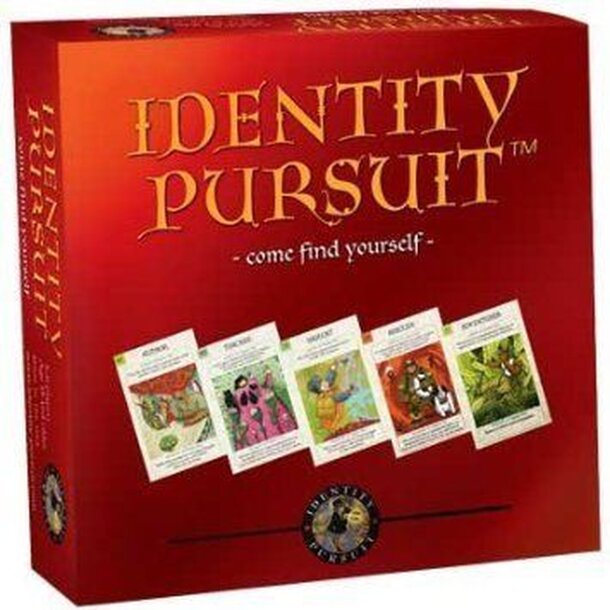From the rules: "Identity Pursuit is a game that uses the concept of archetypes to challenge you and your fellow players to look more closely at how you see yourselves and each other." Each player begins by placing a pawn on the starting square and drawing four cards, each of which names and describes and archetype such as "mother" or "adventurer." Three...