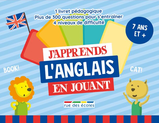 Created and play tested by teachers, this speed and memory game helps learn English while having fun, with a mix of images, words and riddles both in French and in English. The players choose a category (human body, fruits & vegetables, colors & shapes, in the classroom, clothes & accessories, food & drinks) and display the 12 related cards on the table....