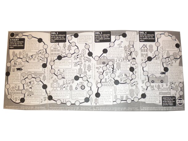 The Little Environmental Game Play the game and learn about how the milk affects the environment. The path from 'Start' to 'Goal' [Mål] are not numbered at the gameboard, but you actually move your counter from circle number 1 to number 78. The gameboard is illustrated with: cows, trucks, a tractor, farms, a school, a dairy, a shop and other features. At...