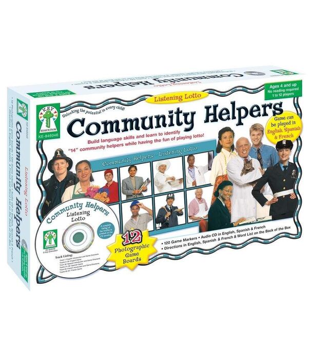 In this educational children's game, players match The names of specific jobs (e.g. Firefighter or nurse) to photographs of those people. To play, players listen to the sounds on the CD and place tokens on the images on their game cards that match what they hear. Players win by matching the most images correctly. Each game set includes 12 game cards with 8...