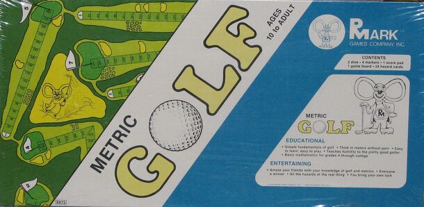Metric Golf is educational and entertaining…easy to learn, easy to play. It's a dice and move game. From the box cover: Simple fundamentals of golf Think in meters without pain Easy to learn, easy to play Teaches humility to the pretty good golfer Basic mathematics for grades 4 through college Amaze your friends with your knowledge of golf and metrics...