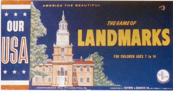 This is part of a series of educational "Our USA" games from Selchow and Richter. The series also included "Our USA: Products and Resources" and "Our USA: Heroes and Events". (There may be others.) This game was copyrighted in 1962 and is basically a roll & move historical game about famous American Landmarks that you try to visit. The game is designed for...