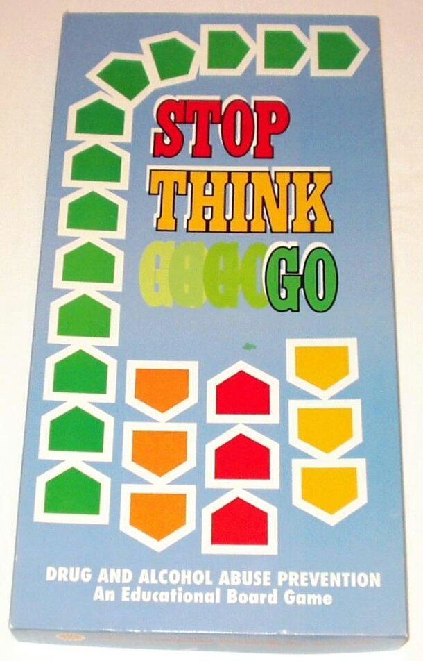 Players roll and move along a track. Players must satisfy the conditions of either stopping, relaxing (engaging in an activity that is thought of as relaxing), or thinking. When a player has successfully traversed the track, he or she wins. From the creator: STOP, RELAX, and THINK evolved out of my work with children at Fourth Street Project over the last...