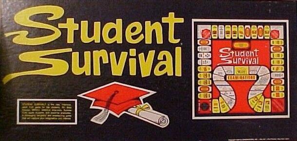 Student Survival is a loose simulation of college life. Players roll the dice and move around the board, taking classes, getting part time jobs, passing exams, etc. Players start as Freshmen and advance through Sophomore, Junior, and Senior before either quitting because their money runs out or graduating to end the game. The basic premise: get through...