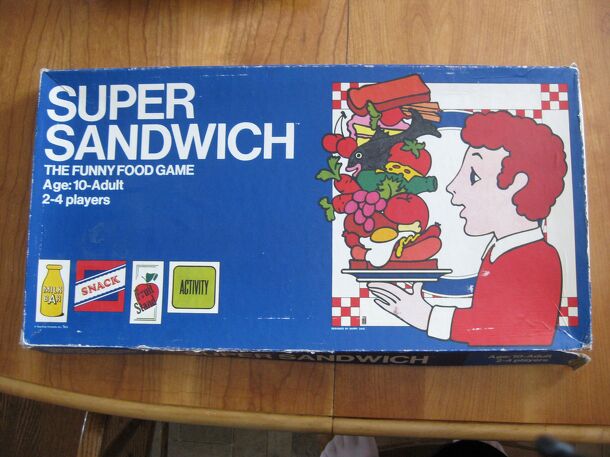 From the rules: The object of the game is to concoct the "super sandwich." This is a sandwich comprised of any assortment of foods which will provide the RDA of protein, calcium, iron, vitamin A, vitamin B-complex and vitamin C, and still not contain calories in excess of the recommended allowance. Players purchase foods and record the content of each of...
