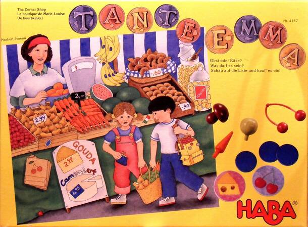 In order to succeed in Tante Emma the players have to recognize the items on the shopping list, but the luck of dice will also determine the winner. Each child receives a shopping list that he/she tries to complete. They draw wares from the bag and throw the dice to determine price. The first child to complete his shopping list wins. Content: - 14 wares -...