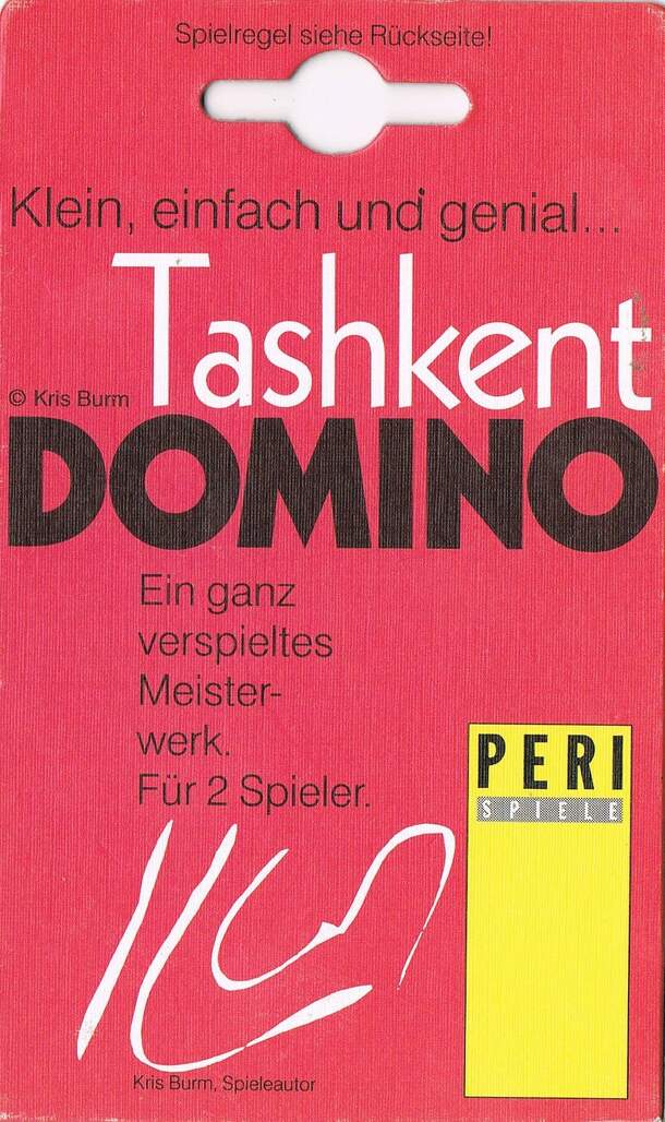 Tashkent Domino is a pocket size 2 player placement game using dice. There are 9 dice with each face divided by a diagonal line. Either side of the lines are 0 to 3 dots. Players take 4 dice each and roll them once only, placing them according to the top face. The starting player rolls the 9th die and puts it in the center of the 3x3 grid. Players then...