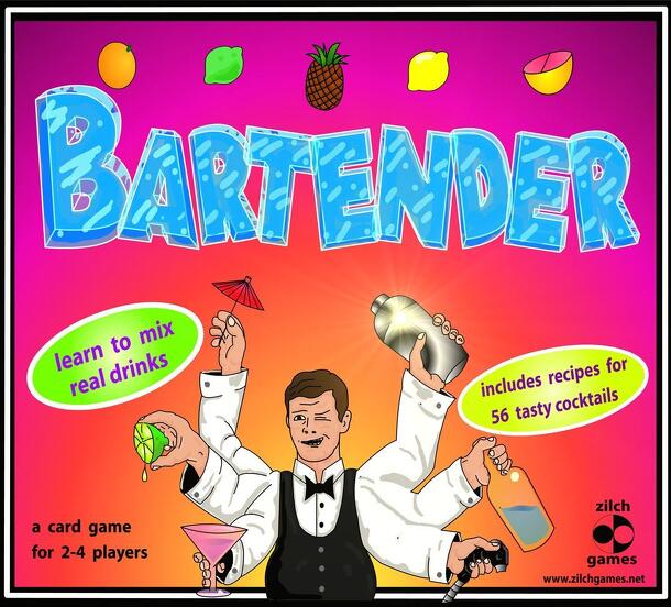 Bartender is a card game in which players compete to make the most money by mixing fancy drinks. The fancier the drink, the more money it is worth. In Bartender, the table represents the bar, the deck of cards represents the store-room full of ingredients, and the cards in the players hands represent the ingredients the players are carrying from the...
