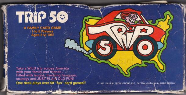Choose one of the 50 United States as your "takeoff" state to begin a "Trip of Cards" across the U.S.A.! The object of Trip 50® is to play a series of Trip Cards in a connecting chain. Each card played must share a border with the takeoff state or with another Trip Card already played. The first person to properly play all of his cards goes "Trip 50®" and...