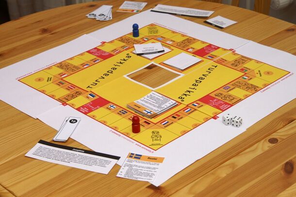 Turvapaikka (Asylum) is a board game about asylum seekers in European Union. Each player has a certain background story given by his/her profile card and 20 points to begin with. The story has minor effects on gameplay. Players roll dice and move around the square monopoly-like game board. Most spaces of the track represent countries, but there are also...