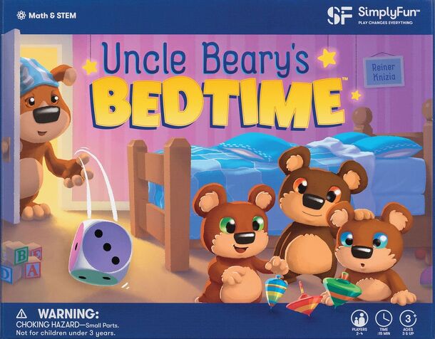 Uncle Beary's Bedtime is a family-friendly game designed to help young children develop early counting skills while having fun. How to Play Players take turns rolling the die. Based on the roll, players will either move the bear cubs from a toy tile to their bed tile or from their bed tile back to a toy tile, or move Uncle Beary to the next room. The...