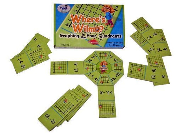 Where's Wilma? provides playful practice in identifying and plotting ordered pairs, an essential skill in algebra! The four quadrants of the coordinate plane enhance the understanding of integers. The distinctive starting board offers eight tracks for placing dominoes. Players match each ordered pair with one of the 16 locations where Wilma is hiding. The...