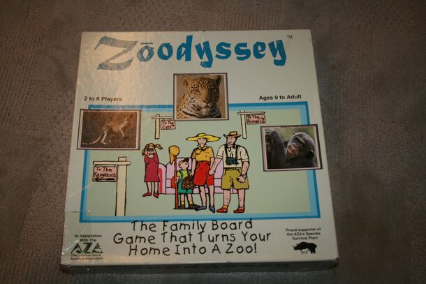 From the box: "Zoodyssey is the only family board game that combines the fun and excitement of going to the zoo with scientific understanding of some of the world's most endangered animals. The game takes about 55 minutes. Players move along the paths of the zoo and collect Animal Snapshot cards. Each card has a picture of a zoo animal, some Fun Facts...