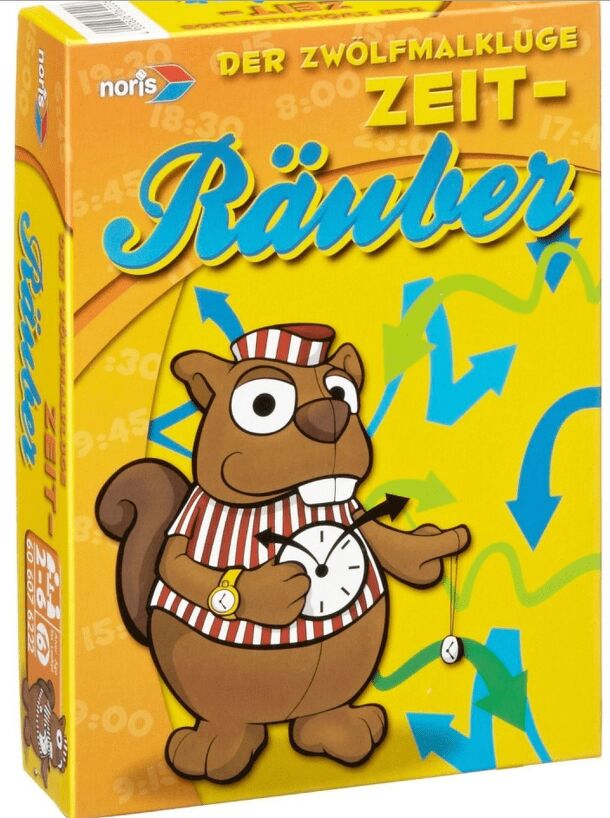 The time robbers have stolen the hands of all the clocks, but the children can repair the damage and position the hands again. The cards are stacked hand-free clocks facing upwards. The bottom card is drawn, the picture on each card gives hints to the time-frame: A soup pot indicates lunchtime, a sleeping child night-time. You try to position the hands on...