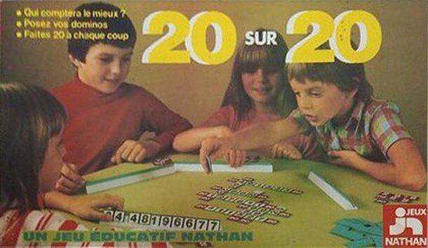 In 20 sur 20, players use their five drawn number domino-like tiles to form sums of 20 on a line. Each sum of 20 scores one point. A completed sum of 20 is sealed with 20 token on the start and end of the sum and cannot be reused. However one of the number used by the sum can be reused by a crossing sum of twenty made by a player. If he can make another...
