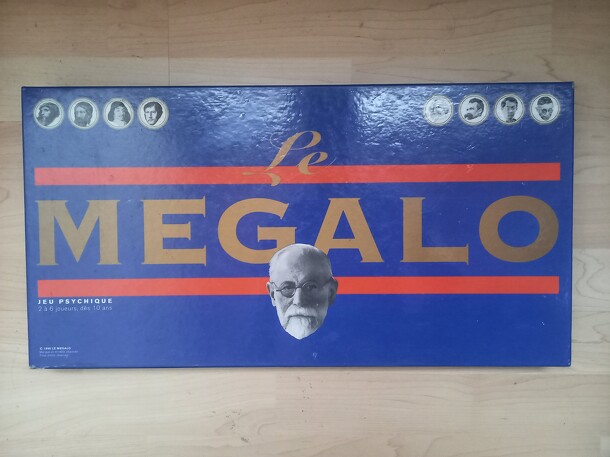 Le MEGALO is a game created and self-published by entrepreneur Jacques Zwahlen, head of the Veillon mail-order company, and sold in the company's catalog, distributed to all Swiss households in the 90s and 2000s. It's a mixture of Monopoly and a game of goose on the theme of human psychic development from birth to death. To win, players must acquire a...
