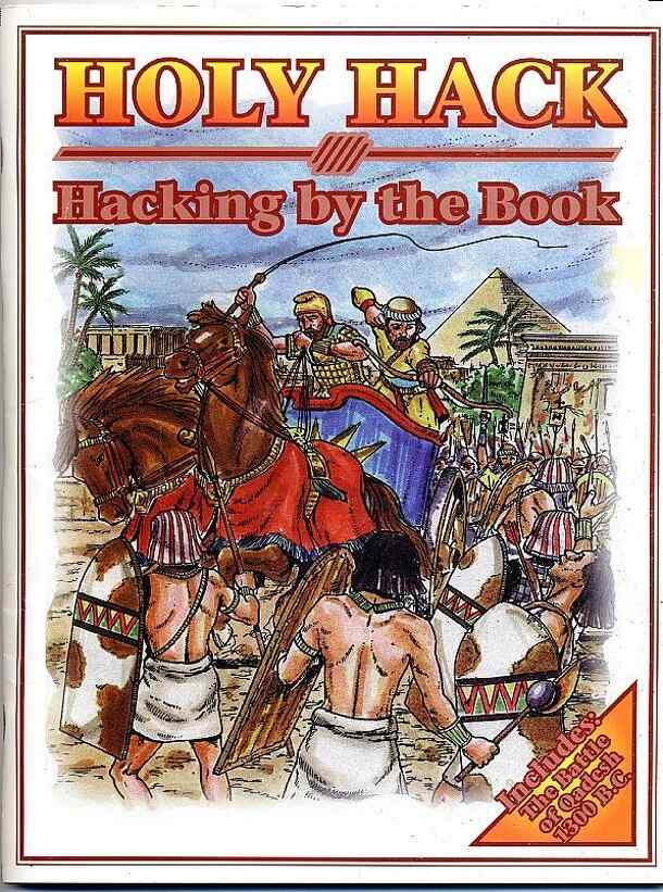From the rulebook: "Revised and expanded to include warfare in The Near East, Egypt and Africa in Old Testament Times. Includes general orders of battle, tactics, formations, revised casualty calculation method, diagrams, naval & siege rules, Divine Intervention, heroic challenges & Q.R.S. "Originally published as `Holy Hack: Hacking By the Book Biblical...