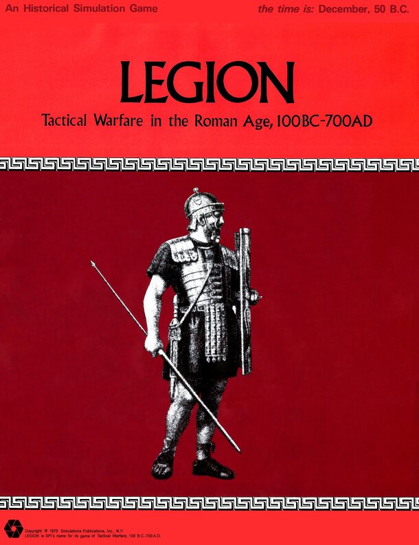 Legion, Tactical Warfare in the Roman Age, 100BC-700AD. An Historical Simulation Game, the time is: December 50 B.C. Tactical combat system pits Roman Legions against Barbaric Hordes, Carthage, and Legion vs. Legion. One of five games in a series by SPI called PRESTAGS (the others were CHARIOT, SPARTAN, VIKING and YEOMAN). Tactical level game. Each game...