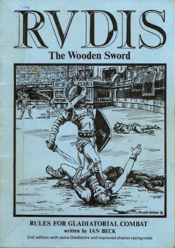 A set of miniatures rules for gladiatorial combat to be played on a hexagonal mapsheet. For two or more players. There are three separate sets of rules included. Rudis 1 is basic hand-to-hand combat between small groups of gladiators. Rudis 2 is for larger and more spectacular combats. Finally, Rudis 3 is a set of chariot racing rules. A small print run...