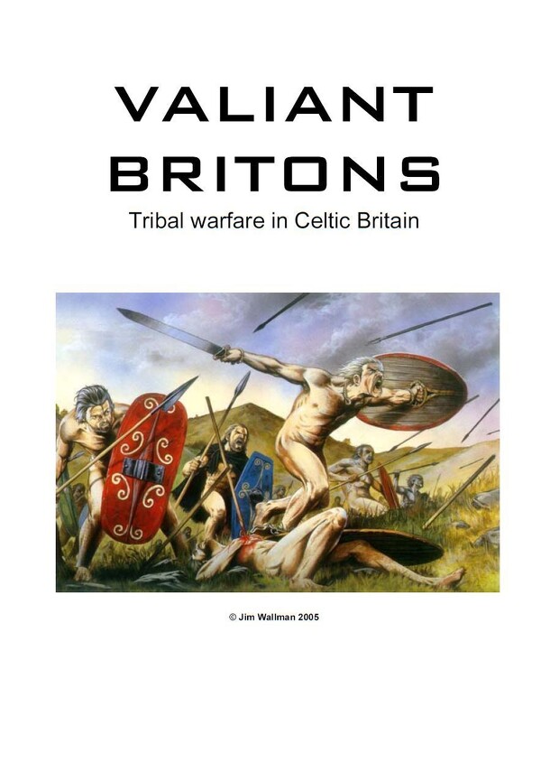 Valiant Britons: Tribal warfare in Celtic Briton. An ancients miniatures wargame. Game scales are provided for playing with 15mm, 25mm, or 6mm figures. Battles may be fought between two Celtic warbands, or against Roman forces. Excerpts from rulebook: "This is a wargame set in ancient times, somewhere between the 4th Century BC and 1st Century AD about...