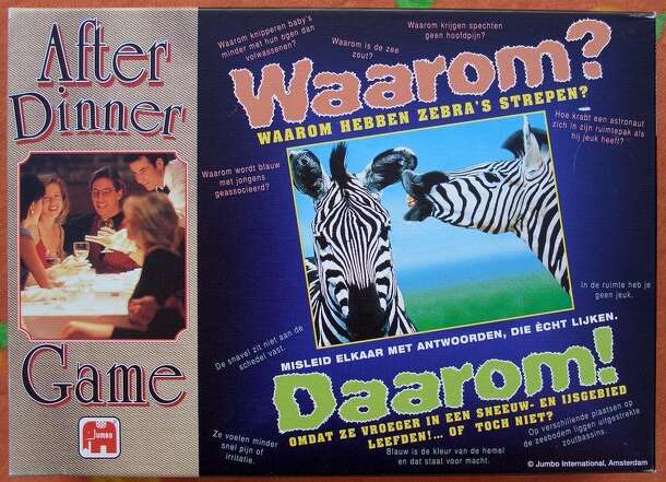 On your turn you draw a card and read the question out loud. The correct answer is also printed on the card. Questions range from absurd to very difficult. eg : "Why is a carrot orange and a tomato red?" or "What happens to the caffeine that 's extracted to create caffeine free coffee?" Each player writes an answer in secret on a piece of paper. The player...